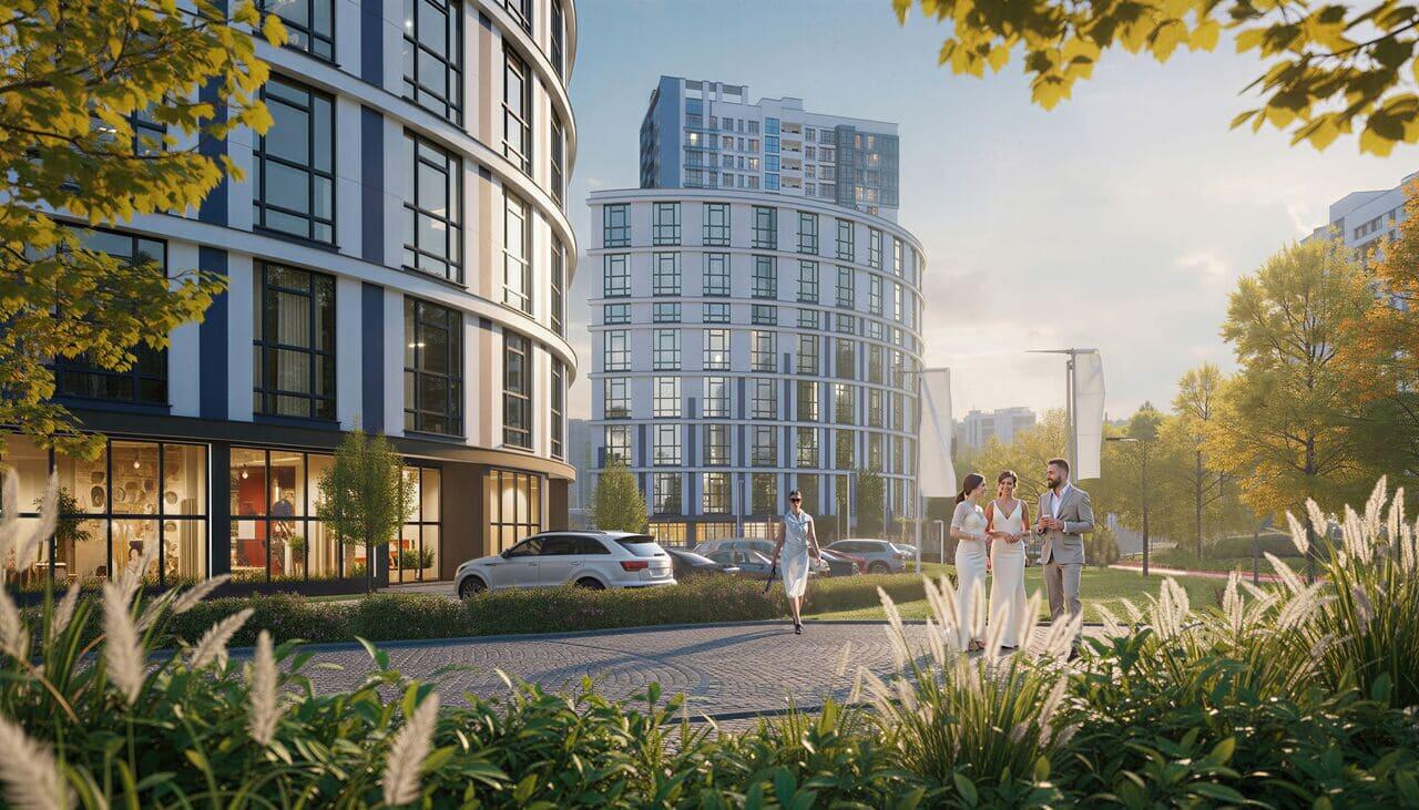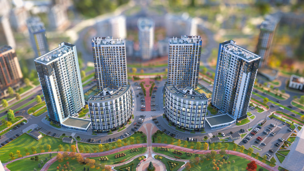 Плавные линии: дугообразная форма зданий создает гармонию между урбанистикой и природой.