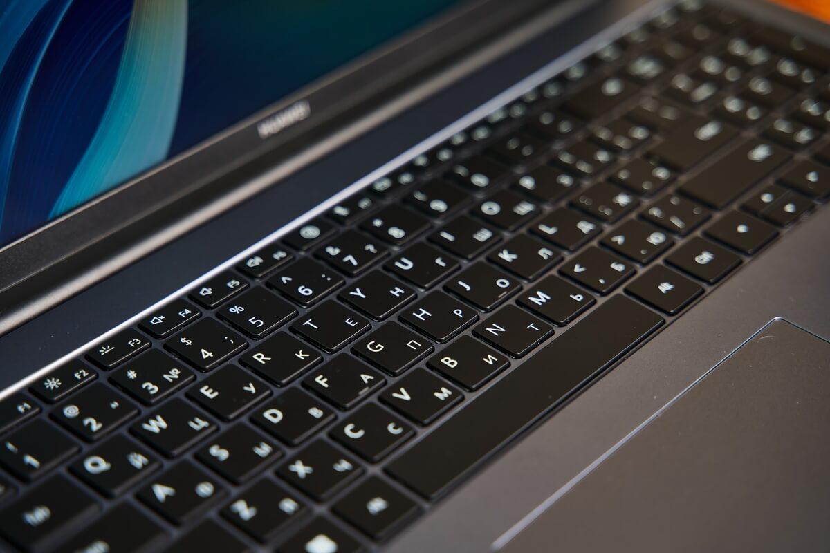 Клавиши нажимаются мягко, с ходом 1,5 мм, и снабжены механизмом амортизации. Если вы сталкивались с чувством онемения в пальцах после долгого рабочего дня, когда приходилось без устали барабанить по жесткой клавиатуре, то по достоинству оцените это решение. С Huawei MateBook D 16 2024 риск появления такого эффекта снижен, а бегло печатать на нем – комфортно. Имеется и подсветка клавиш с несколькими уровнями интенсивности свечения.