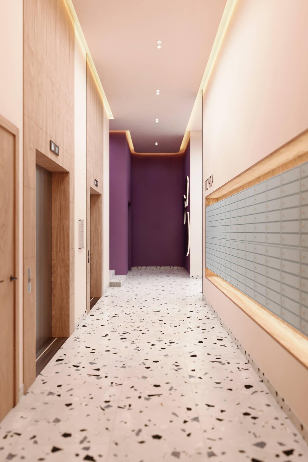 В домах комплекса Minsk World нет привычных подъездов. Вместо них 4 просторных благоустроенных лобби с высотой пололка 4,2 м. Эксклюзивный дизайн, керамогранитные полы, художественное оформление стен.