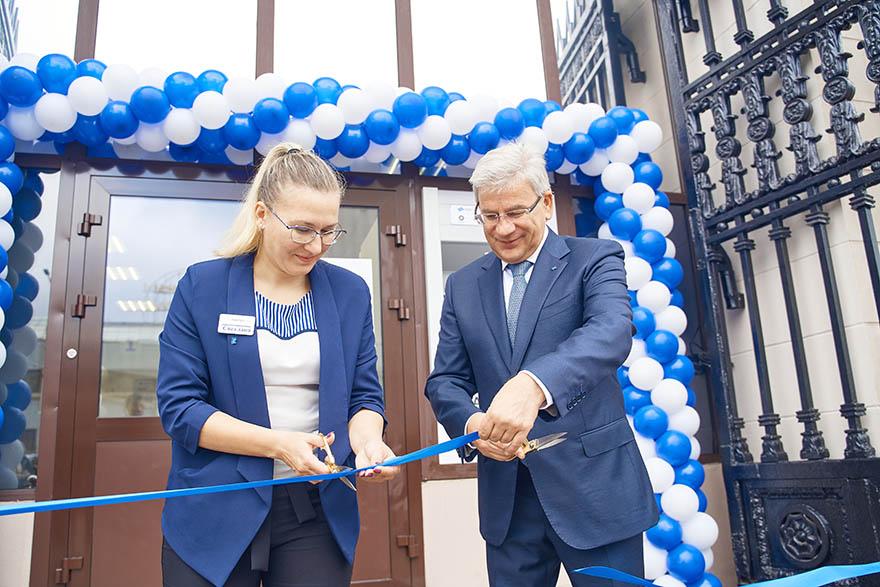 Церемонию открытия возглавил Председатель Правления банка Катибников Игорь Васильевич, который торжественно перерезал ленту совместно с и.о. начальника центра банковских услуг Русак Светланой Игоревной.