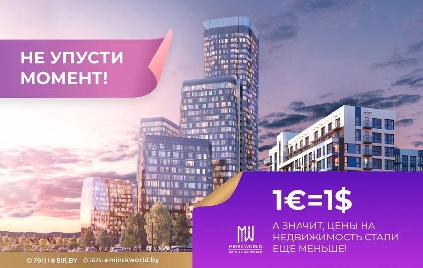 1€ = $1! Курсы доллара и евро сравнялись! Цены на недвижимость стали меньше, а жильё — доступнее. Наступило самое удачное время для того, чтобы инвестировать в недвижимость Minsk World, где стоимость 1 м2 привязана к евро.