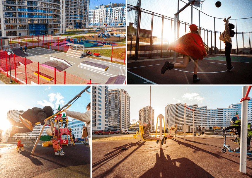 В каждом квартале родители найдут максимально широкий диапазон возможностей, чтобы привить своему ребёнку любовь к здоровому образу жизни, преумножив его (и, конечно, свою!) силу, ловкость и выносливость.