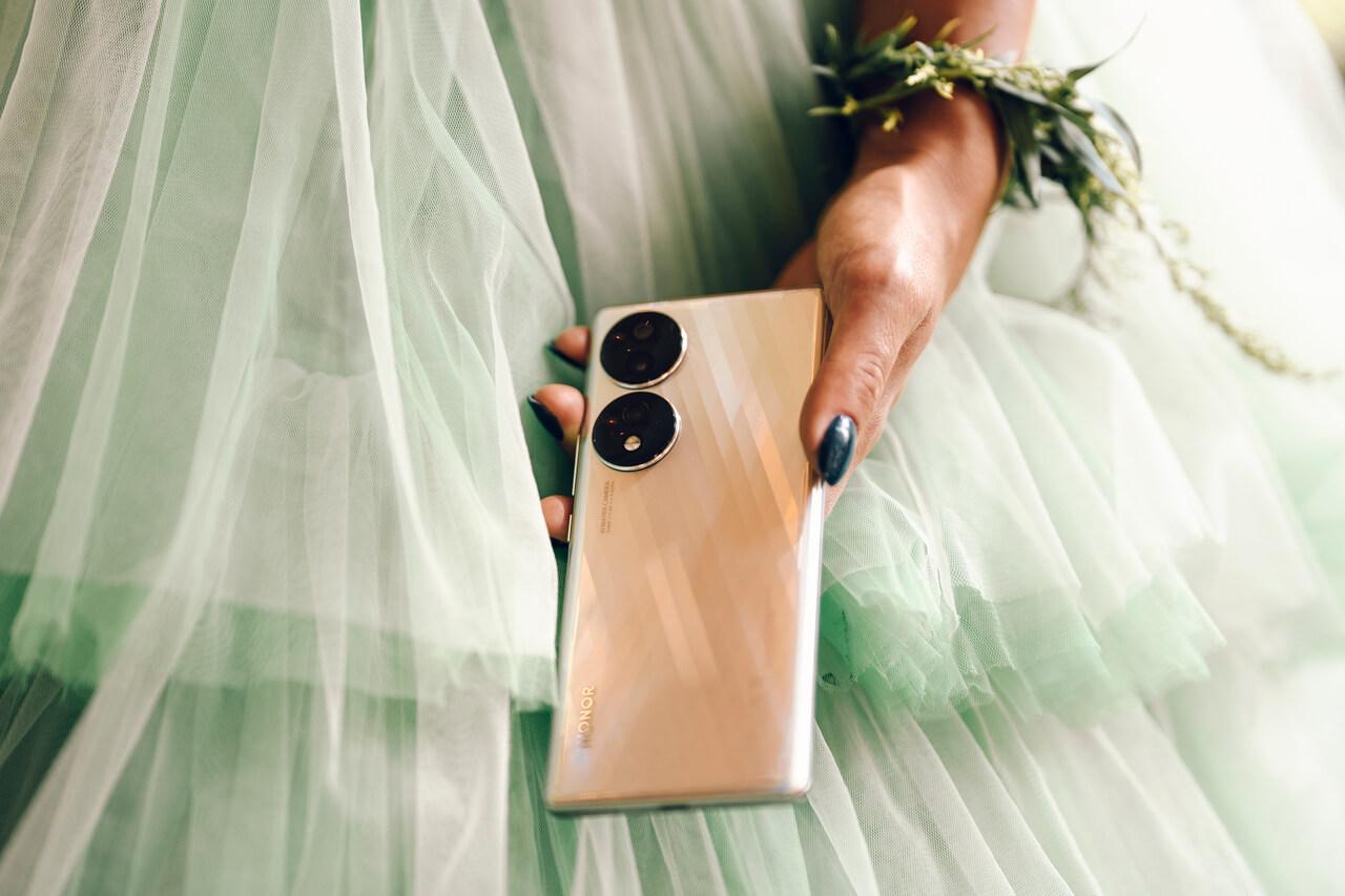 Во-первых, HONOR 70 – это красиво. Дизайнеры постарались сделать так, чтобы один раз увидев, вы влюбились в этот смартфон раз и навсегда. Каждый найдет свой вариант оформления задней панели HONOR 70. Так, серебристо-белый мерцающий кристалл с перламутровым оттенком переливается при малейшем повороте будто бриллиант. А еще есть тактильно приятный матовый изумрудно-зеленый и глянцевый полночно-черный для поклонников классики.