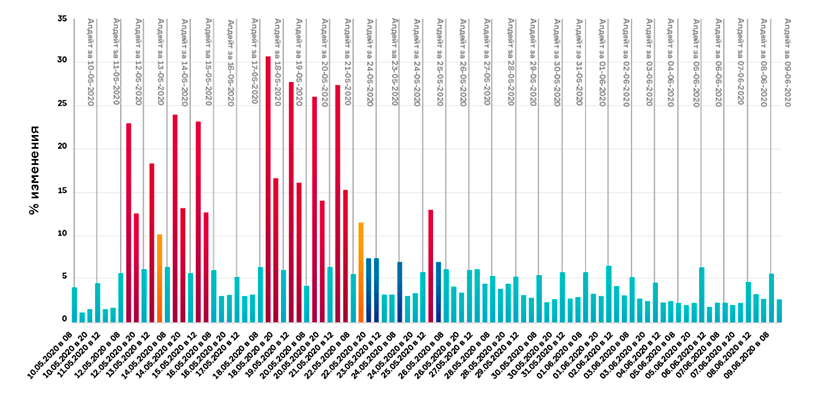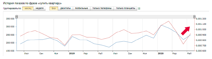 Во-первых, «Яндекс» экспериментировал с выдачей, что сильно повлияло на участников некоторых тематических групп. Во-вторых, после апрельского затишья оживились потребители и сам бизнес, вследствие чего вырос спрос и количество запросов в поисковиках.
