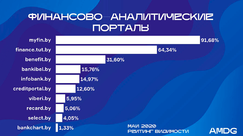 При этом занимавший в апреле 8-ю строку Moneys.by выбывает из ТОП-10, а его место занимает Bankchart.by.