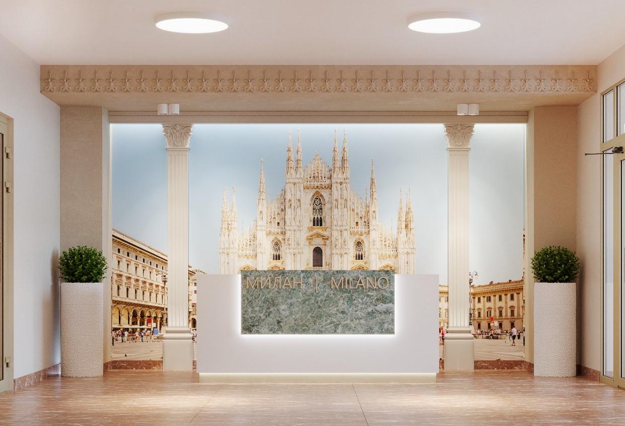 - эксклюзивные дизайнерские лобби с местами отдыха для гостей, санитарными комнатами, картинами достопримечательностей одной из итальянских столиц;