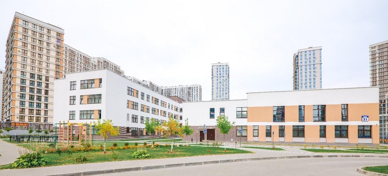 - Детские сады и школы — прекрасно оборудованные, имеющие обширные спортивные территории, компьютерные, хореографические классы, кабинеты изучения ПДД. Родители и дети экономят время на дорогу и получают уверенность в завтрашнем дне, ведь ребенок будет всесторонне развиваться в наилучших условиях!