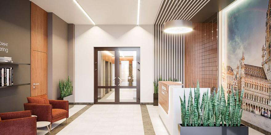 На первом этаже – дизайнерские лобби со стойкой консьержа, санитарной комнатой с пеленальным столиком и лапомойкой для домашних животных. В увеличенном тамбуре можно будет разместить детские коляски.