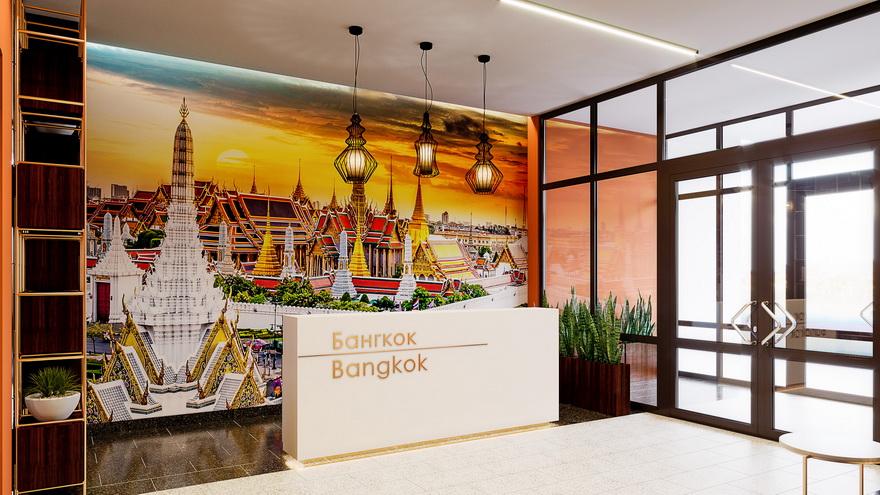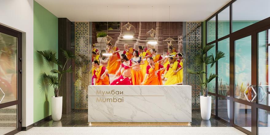 На первом этаже гостей и жильцов домов «Мумбаи» и «Бангкок» встречают дизайнерские лобби, в которых сочетаются комфорт и стиль.