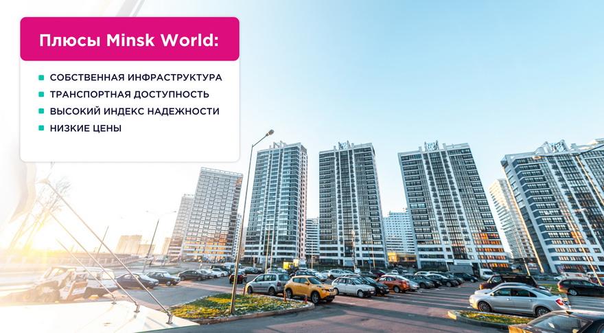 При строительстве многофункционального комплекса Minsk World используется концепция «город в городе», поэтому для жильцов создана удобная инфраструктура – есть взрослая и детская поликлиники, медицинские центры, школы и детские сады, кафе и рестораны, самый большой в стране торгово-развлекательный центр с паркингом, спортивные залы и фитнес-центры. Здесь же находится и Международный финансовый центр, который станет площадкой для работы инновационных стартапов и создания тысячи рабочих мест.