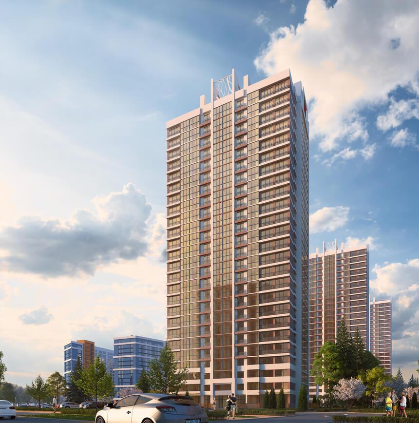 В домах «Бразилиа» и «Монтевидео» по 25 этажей. Цветовая гамма фасадов этих новостроек будущего решена в теплых песочно-коричневых тонах. Подъезды сквозные (с пандусом у главного входа). Апартаменты на 1 этаже будут иметь собственные террасы с калитками, ведущими на прилегающую территорию. Над террасами запроектированы стеклянные козырьки. Обособленные входы в апартаменты первого этажа также будут оборудованы пандусами (комфорт для мам с колясками и лиц с ограниченными возможностями!).