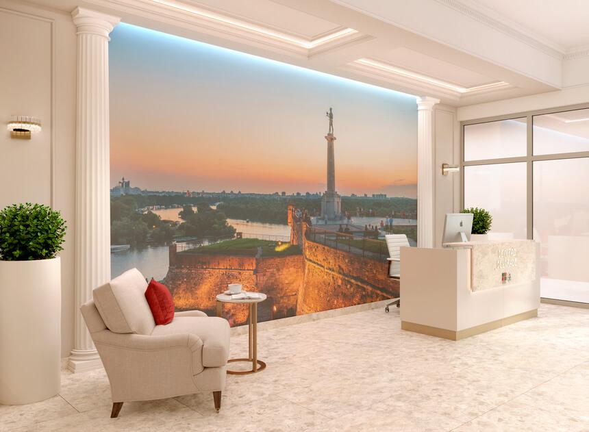Комфорт в «Белграде» будет начинаться с порога: невысокое крыльцо оборудовано пандусом для подъема детских и инвалидных колясок. Распахнув двери можно будет увидеть эксклюзивное дизайнерское лобби.