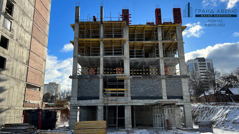 Работы по сносу старых бараков и подготовки площадки для котлована были завершены в конце лета. Уже залита плита, залиты несущие перегородки подземного паркинга и первых четырех этажей. Сейчас идут работы по возведению 5 жилого этажа ДОМА №2.