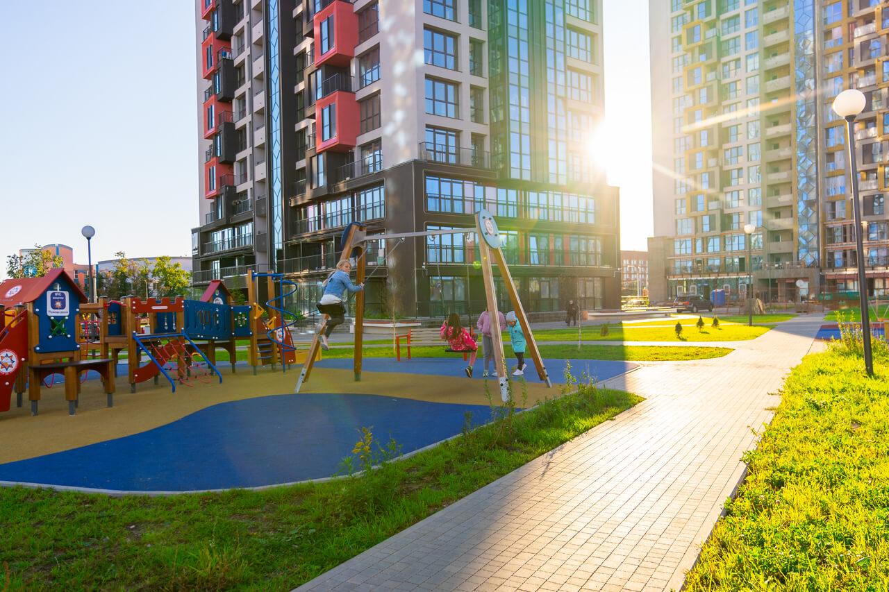 Красочные детские городки на безопасных прилегающих территориях