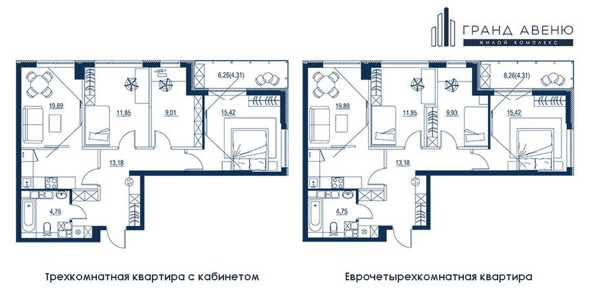 Варианты приобретения квартиры 80 м.кв. в ЖК «Гранд Авеню»: