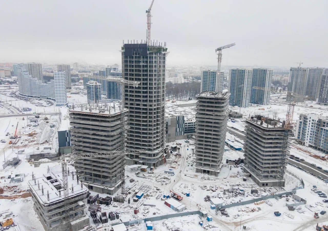 5 башен Международного финансового центра. У самой высокой готовы 27 этажей. Всего будет 42. МФЦ — новая страница в истории экономического развития нашей страны. Центр создаётся для реализации уникальных международных проектов. Появление объекта изменит статус комплекса. Он станет деловым сердцем столицы и всей страны.