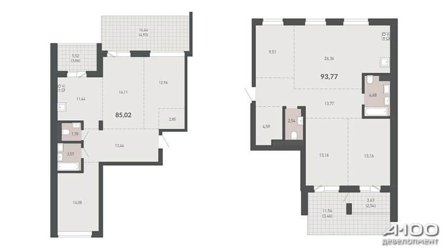 В квартирах реализованы планировки со свободными пространствами кухни, гостиной и коридора, а также специальными хобби-комнатами – компактными помещениями, в которых можно расположить гардеробную, рабочий кабинет, мастерскую или домашнюю библиотеку.