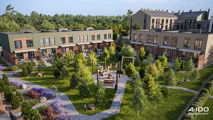 В «Зеленой гавани» начинают строить дома нового для Беларуси формата — урбанхаусы. Это группа домов на 4 и 6 двухэтажных квартир с общим закрытым двором для жителей, оборудованным зонами отдыха и барбекю. Застройщик «А-100 Девелопмент» уже запустил продажи первых квартир.