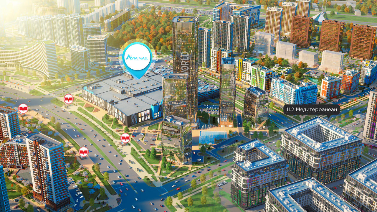Если вы планировали приобрести статусную недвижимость в одном из самых динамичных кварталов «Минск-Мира», сейчас – прекрасный момент. От дома «Медитерранеан» до башен Международного финансового коммерческого центра и ТЦ Avia Mall всего несколько минут пешком!