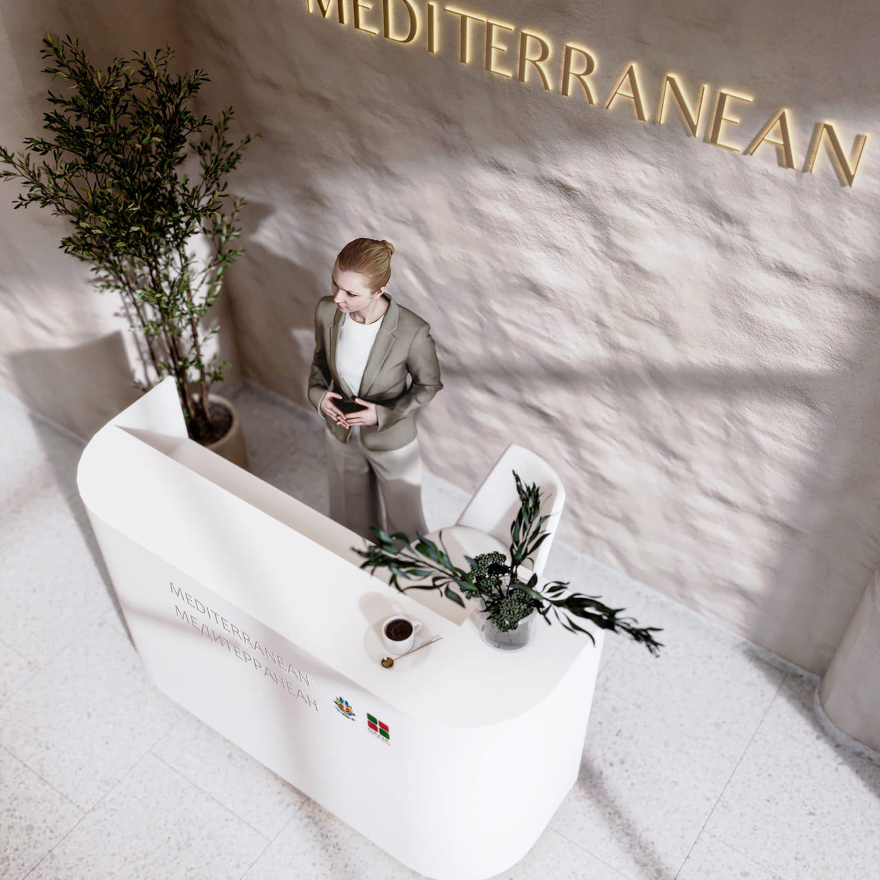Архитектура дома «Медитерранеан» закольцовывается, образуя внутренний уютный дворик с местами отдыха и сезонной инфраструктурой встроенных торговых помещений. Выступающие элементы фасадов образуют свою неповторимую систему, дополняемую фасадами остальных домов квартала «Австралия и Океания».