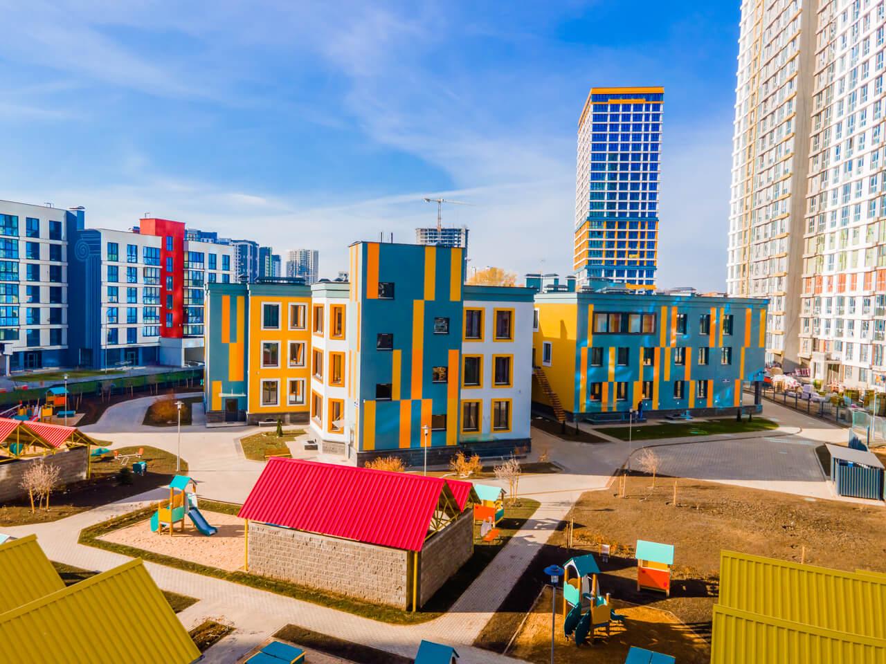 Здесь находятся яркие детские городки, площадки воркаута, места отдыха для детей и взрослых.