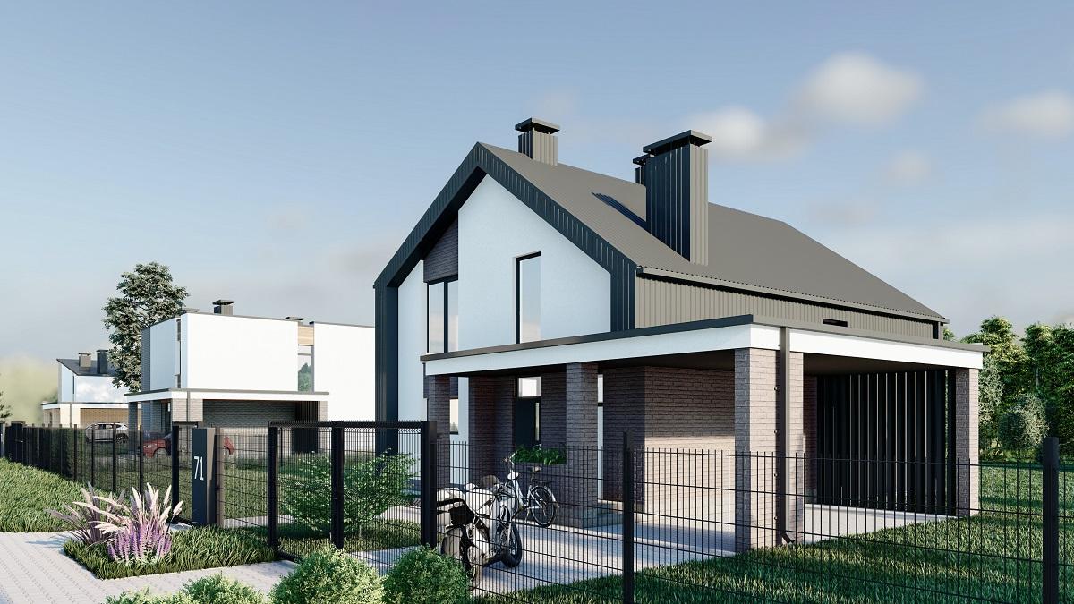 Поселок занимает площадь 12 га, на которых по проекту будут размещены 74 комфортных дома. Они выполнены в скандинавском стиле, дизайн сочетает в себе натуральность, естественность, лаконичность и простор.