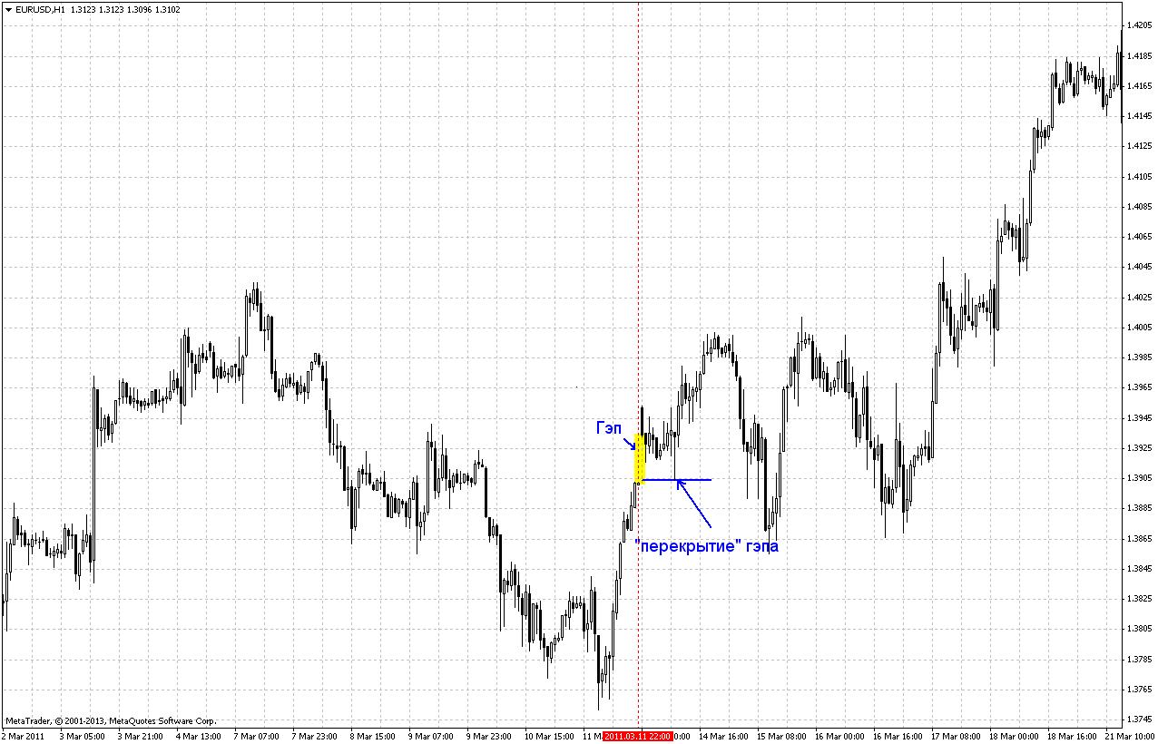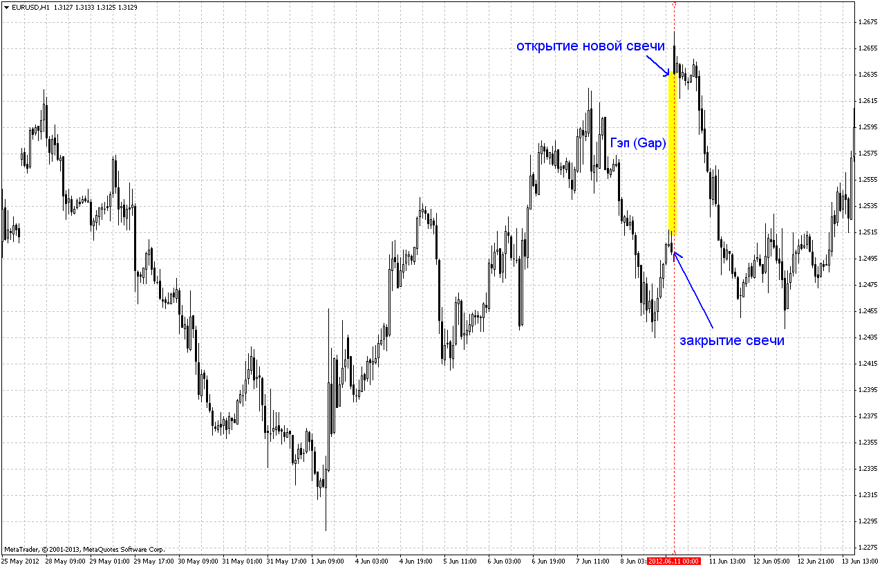 Гэп (от английского gap) — это «разрыв» котировок на торговом графике, который может возникнуть, когда происходит очень быстрое, резкое изменение торговых цен. На Форекс гэп проявляется как сильный «рывок» торговой цены в какую- либо сторону, вследствие которого появляется заметный «разрыв» между уровнями закрытия одной свечи и открытия очередной. Гэп можно наблюдать только используя режим отображения торгового графика в виде баров или японских свечей..jpg)