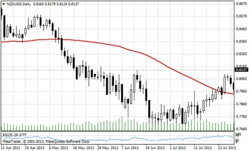 Следующий вариант использования МА – это добавление к графику крупнопериодного индикатора (период 50-100 и более) для получения дополнительного сигнала при развороте тренда. Такой способ использования скользящей средней подходит трейдерам, совершающим среднесрочные позиции в направлении текущего тренда. Пересечение цены и индикатора в этом случае будет происходить крайне редко, однако надёжность сигнала будет значительно выше, нежели при использовании мелкопериодного индикатора. Если график цены будет располагаться выше индикатора – это будет дополнительным сигналом к покупкам, если ниже – к продажам, а если график и индикатор будут идти на одном уровне, то это будет означать боковое движение, во время которого следует воздержаться от открытия позиций.