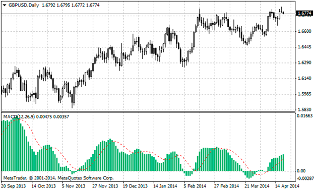 Один из простых вариантов использования гистограммы MACD – для подтверждения текущего тренда и определения его силы. Если гистограмма находится выше «0» - тренд восходящий, ели ниже – нисходящий. Помимо этого, индикатор позволяет выявлять локальные экстремумы (максимумы и минимумы), которые сигнализируют о надвигающейся коррекции тренда либо его развороте. Некоторые трейдеры также используют «впадины» на индикаторе, а также пересечение гистограммы с нулевой линией для добавления новых позиций к уже существующим в рамках тренда. Однако данные сигналы довольно слабые и их нужно тщательно отрабатывать, используя демо счёт Форекс. На трендовом движении входы действительно могут быть удачными, но на боковом – возможны бесполезные сделки, которые будут закрываться с убытком.