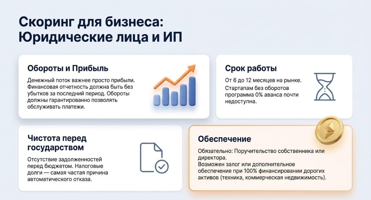 Лизинг без первоначального взноса доступен не всем категориям клиентов. Поскольку лизингодатель финансирует 100% стоимости имущества, требования к платежеспособности и финансовой дисциплине здесь выше, чем при стандартных схемах с авансом 20–40%. Условия различаются для физлиц и бизнеса, но в обоих случаях ключевым фактором остается способность клиента стабильно обслуживать повышенную ежемесячную нагрузку.