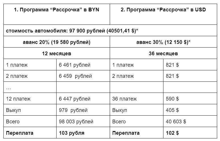 Еще одно удобство покупки в лизинг – возможность выбрать программу финансирования не только по сроку выплат, но и по валюте платежа. Напомним, что в Беларуси возможно оформить лизинг как в белорусских рублях, так и с привязкой выплат к долларам США (по курсу НБРБ).