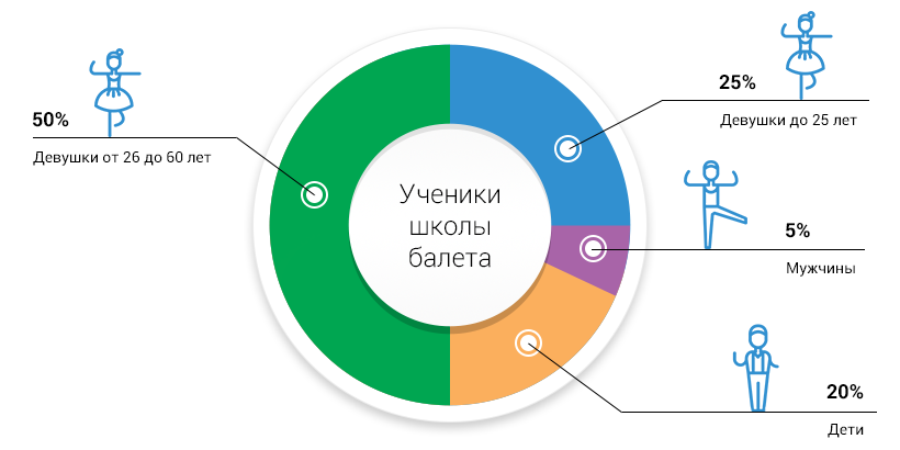 – Наши ученицы в основном – женщины, которые либо занимались классикой в далеком детстве, либо те, кто всегда мечтал заниматься балетом. Многие меняют фитнес на балет, т.к. боятся «перекачать» мышцы, потерять женственность. На танцевальных тренировках этого не случится, потому что при регулярных занятиях мышцы вытягиваются, удлиняются и становятся «суше», ноги выглядят стройнее. У нас в школе занимаются взрослые любого возраста, в том числе и пенсионеры. Начать заниматься балетом можно в любом возрасте, нужно только желание. Приятно, что в последнее время среди наших учеников все больше мужчин. Их уже около 5% от всех клиентов школы. Примерно 25% наших учеников – девушки до 25 лет, 50% – от 26 до 60 лет. Мы не ограничиваемся только взрослыми группами, у нас занимаются балетом и дети, их около 20% от всех наших посетителей.
