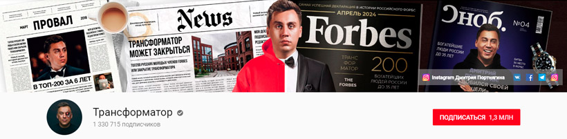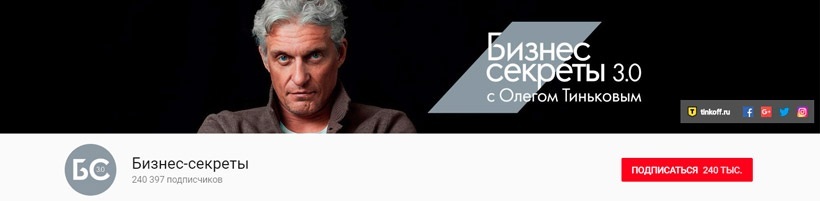 Канал известного российского предпринимателя Олега Тинькова, состояние которого, по данным Forbes, в 2017 году оценивалось в $ 1,2 миллиарда. Ресурс живет с 2011 года, за это время набрал 240 000 подписчиков и почти 21 800 000 просмотров.