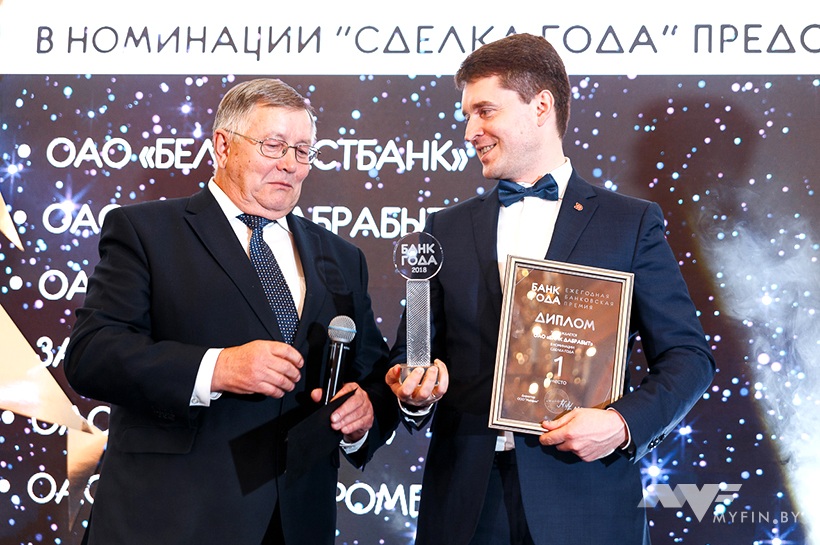 Интересный момент: в этом году подведение итогов конкурса «Банк года» совпало с Днем рождения Романа Кравца, одного из основателей учредителя премии – портала Myfin.by. Роман получил памятную статуэтку из рук Сергея Аникушина, другого основателя Myfin.by.