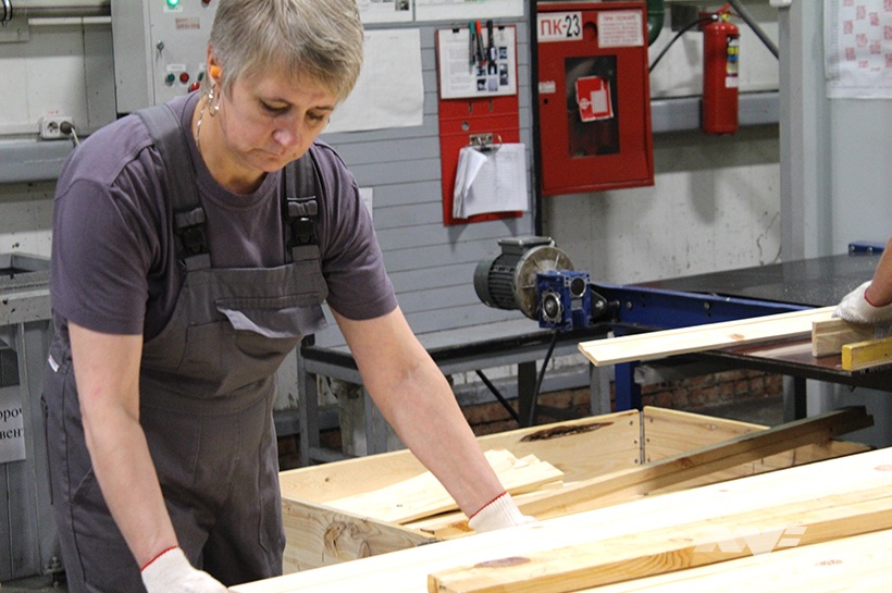 Предприятие перерабатывает до 700 тысяч кубометров леса в год. Средняя заплата здесь 1000 рублей, есть своя столовая, работники обеспечены бесплатным питанием. На предприятии работают в основном белорусы.