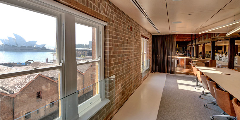 Главный офис Ansarada находится в 104-летнем обновленном здании бывшего склада. Здесь сочетаются старая кирпичная кладка и дерево. Окна выходят на залив Порт-Джексон и знаменитый Сиднейский оперный театр.