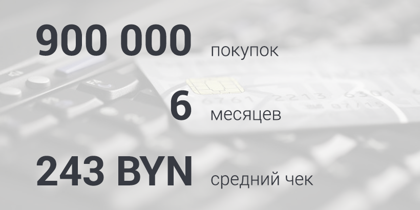 Если говорить о нашем развитии, то мы сделали сетку: сколько интернет-приобретений происходит за полгода или за месяц. Эти цифры уже есть – это где-то 900 000 на приобретение товаров за 6 месяцев. А средний чек – это 243 BYN, исходя из всех сумм, которые мы видели и количества покупок.