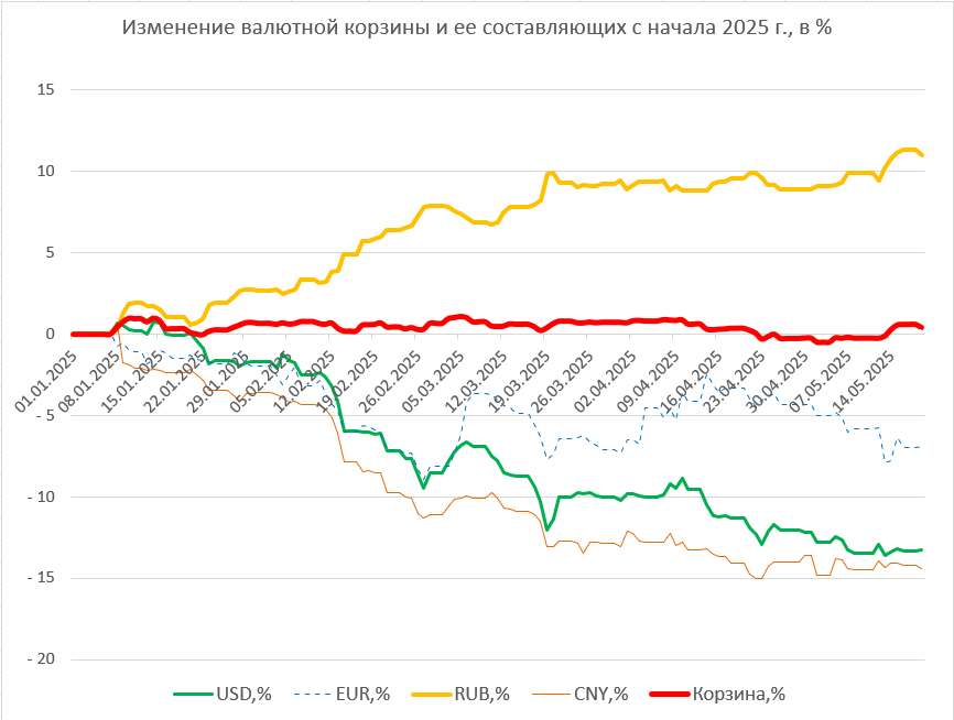 Неделя началась с решения США и Китая о временном сокращении пошлин по итогам двухдневных переговоров по вопросам экономики и торговли в Женеве. Решение подразумевает, что США снизят пошлины на китайские товары со 145% до 30%, а Китай на американские – со 125% до 10%. Решение пока имеет временный статус, на срок 90 дней. На решение положительно отреагировали как сам доллар, так и американские акции. В частности, ведущие американские индексы S&P500 и NASDAQ поднялись до уровней конца февраля – начала марта, выйдя из глубокого пике, в котором они оказались после объявления Трампом в начале апреля о введении импортных пошлин. Индекс доллара в моменте укрепился до месячного максимума.