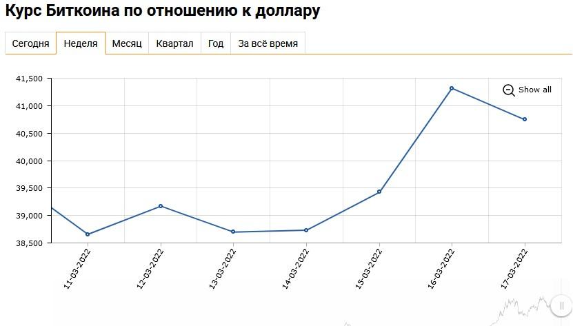 Отметим, что утром 18 марта средневзвешенный курс первой криптовалюты составлял $40815. Максимальный курс достигал $41201,5.