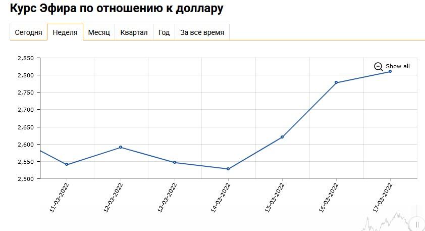 – А эфир и остальные криптовалюты также будут ждать на текущих позициях более позитивных новостей или могут подрасти?