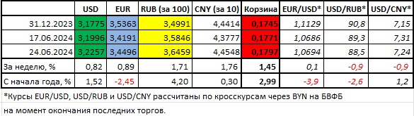 На минувшей неделе, к закрытию пятничных торгов на БВФБ, на внешних рынках доллар снизился к большинству мировых валют, включая евро, юань и российский рубль. Подводим итоги белорусского рынка валют с финансовым аналитиком Вадимом Иосубом.