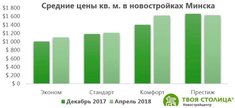 Только за первые четыре месяца текущего года, цены на новостройки Минска в среднем выросли на 6%. А по сравнению с апрелем прошлого года – практически на 8%.