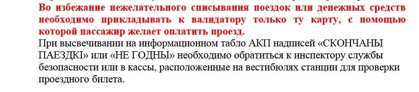 На днях СМИ писали, как у пассажира плата за проезд в метро снялась с банковской карты, а не с проездного, который тоже был в кошельке. Минчанин приложил к валидатору кошелек с проездным и банковскими картами, рассчитывая на то, что поездка спишется с проездного билета. Но плата была взята с банковской карты, о чем пришло SMS-сообщение.