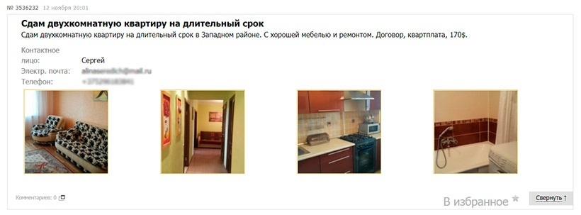 Большая часть объявлений о сдаче квартир ориентировано именно на таких бобруйчан, и появляется на городском сайте bobr.by. На известных сайтах республиканского значения, вроде www.domovita.by, чаще выходят объявления о сдаче квартир на сутки и предложения самого дорогого жилья.