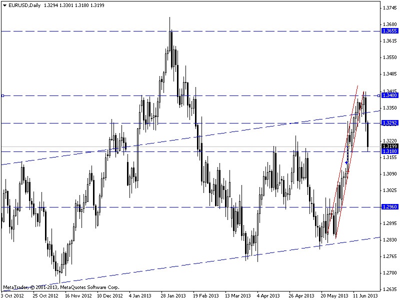 На этой неделе пара EURUSD демонстрировала рост, после чего продемонстрировала пробой линии тренда. Падающее движение продолжается, коррекцию ждем от уровня 1.3180. И только после пробоя данного уровня стоит продолжать продажи.