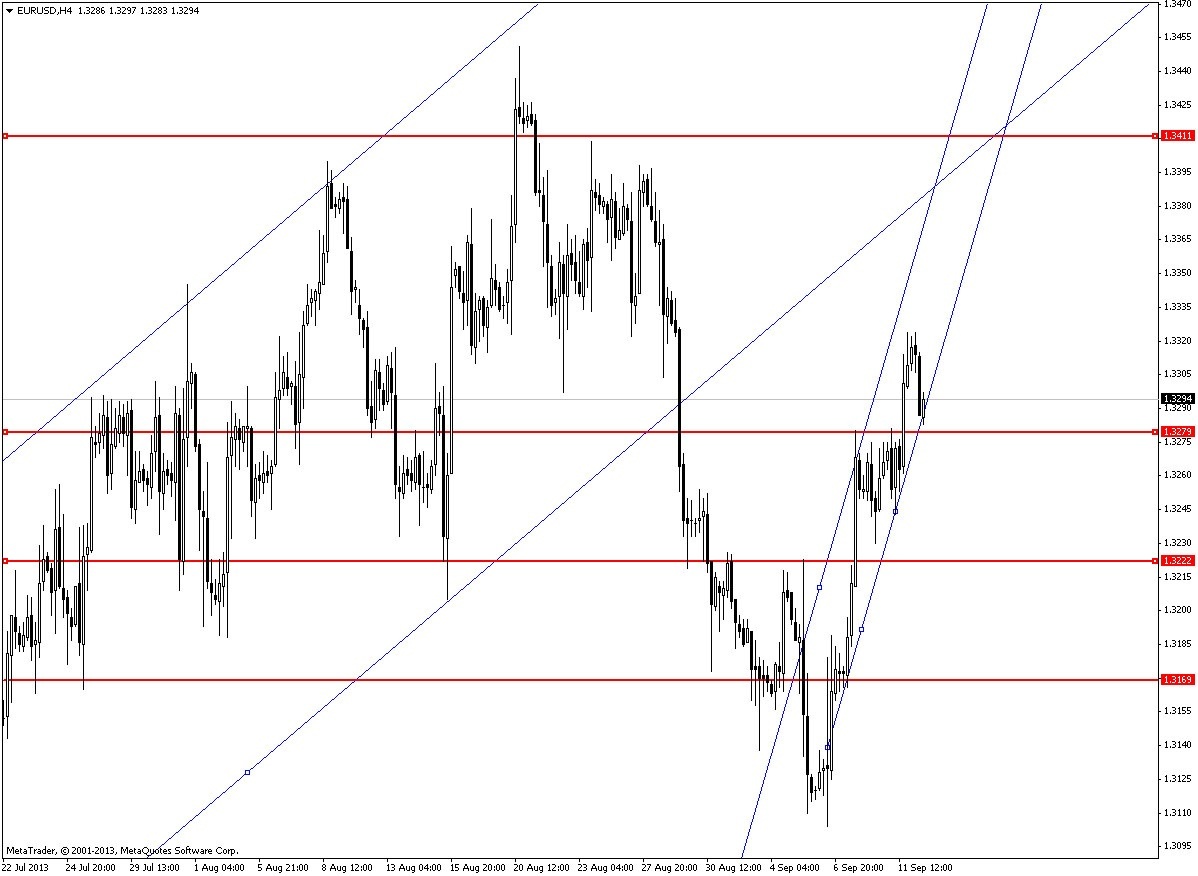 Пара EURUSD продолжает движение в восходящем тренде. Пробила опасный уровень 1.3279 и продолжила активный рост. В данный момент, после небольшой коррекции цена оттолкнулась от линии тренда и будет продолжать рост к уровню 1.3400.