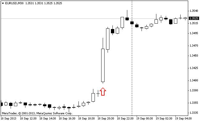 • Заседание FOMC и выступление Бернанке (18.09) – лучше ожиданий, рост EUR/USD на 130 пунктов за 1 час;