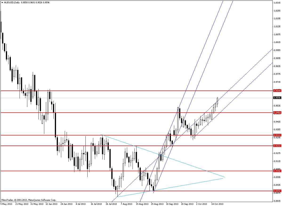 После отскока от уровня 0.9313 пара AUDDUSD демонстрировала постепенный рост, после пробоя 0.9484 продолжила активный рост. Если цена закроется выше линии канала, то она устремится к уровню 0.9649.