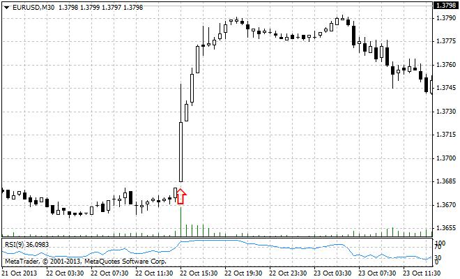 • Несельскохозяйственная занятость в США (22.10) – хуже ожиданий, рост пары EUR/USD на 90 пунктов за 2 часа;