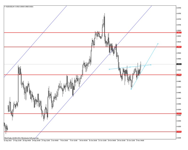 Пара AUDUSD завершила коррекцию, оттолкнувшись от уровня 0.9430. На графике сформировалась фигура разворота «Голова и плечи» перевернутая, что дает сигнал к продолжению активного роста к уровням 0.9607 и 0.9671 и дальше.
